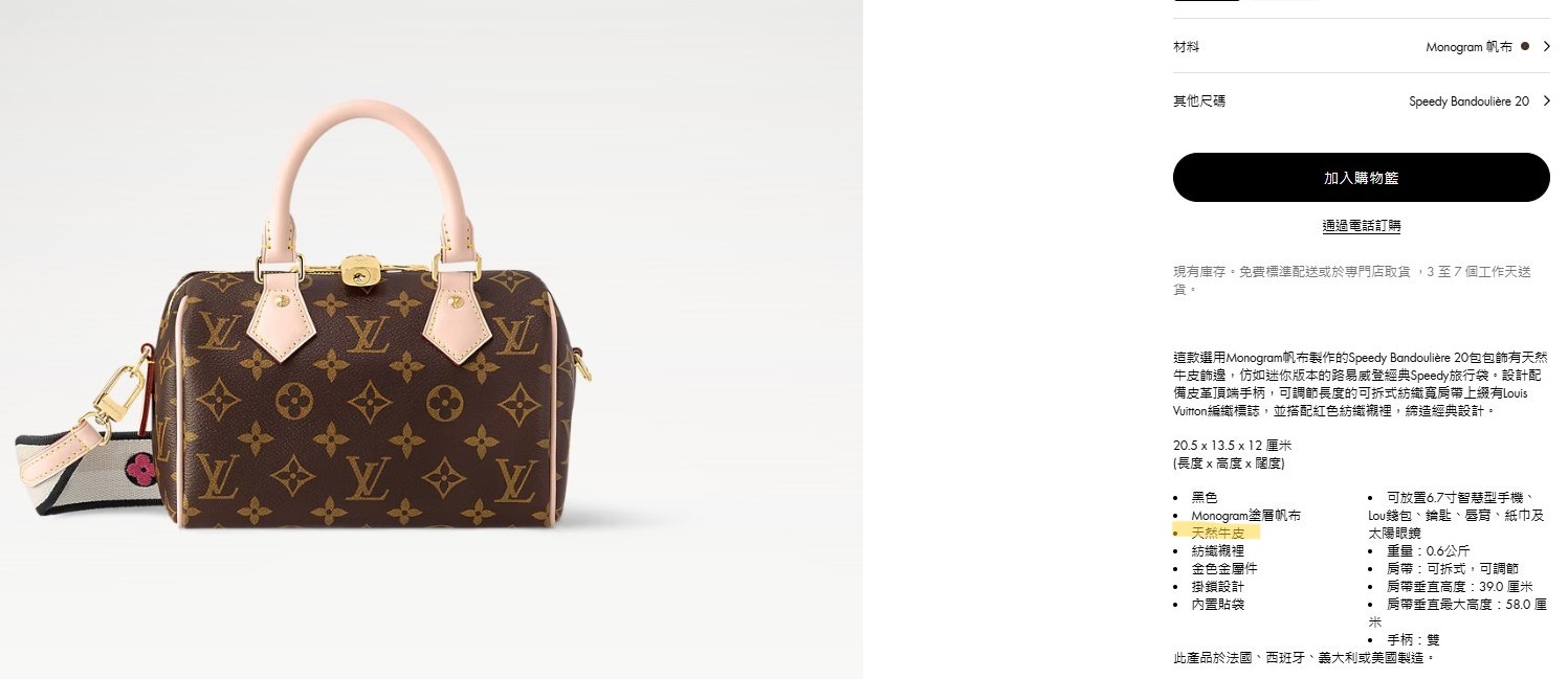 LV牛皮飾邊有分天然牛皮、仿舊牛皮、染色牛皮,使用前可先在LV官網查詢您的包包是哪種牛皮飾邊